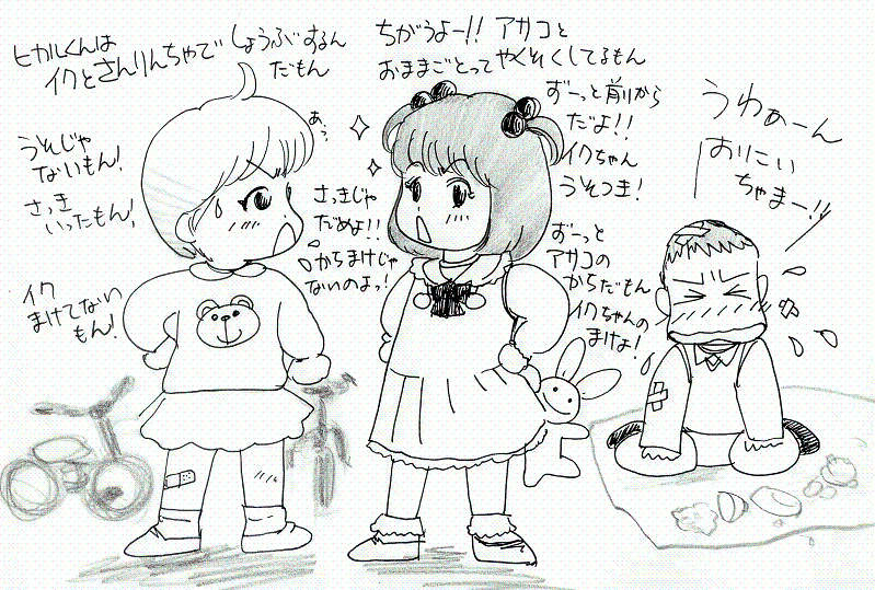 郁 「ヒカルくんはイクとさんりんしゃで しょうぶするんだもん」